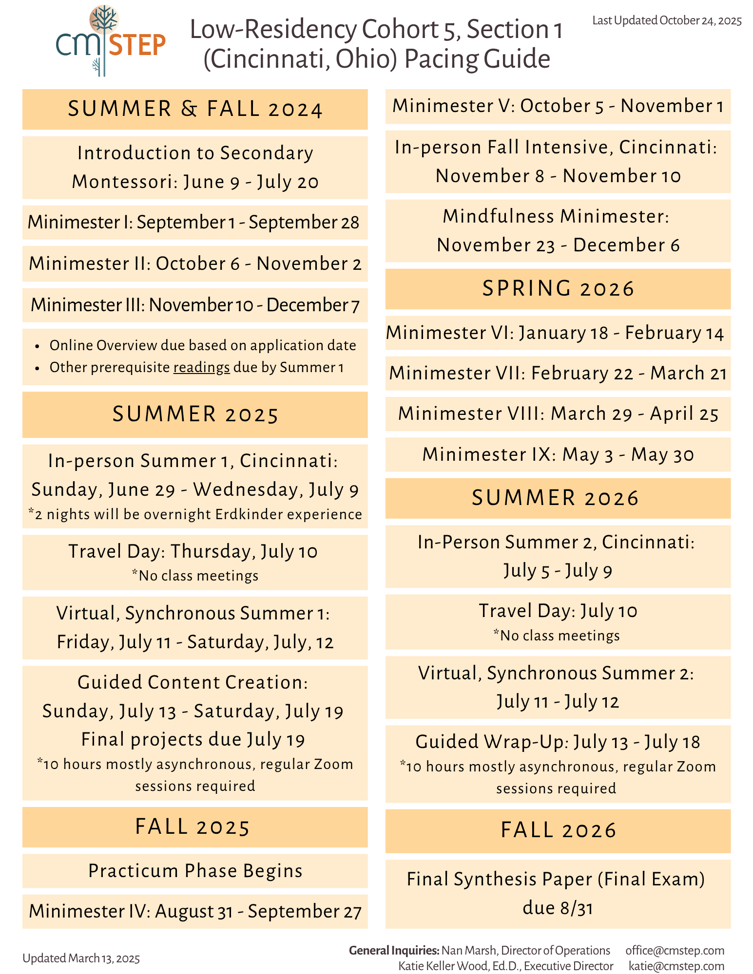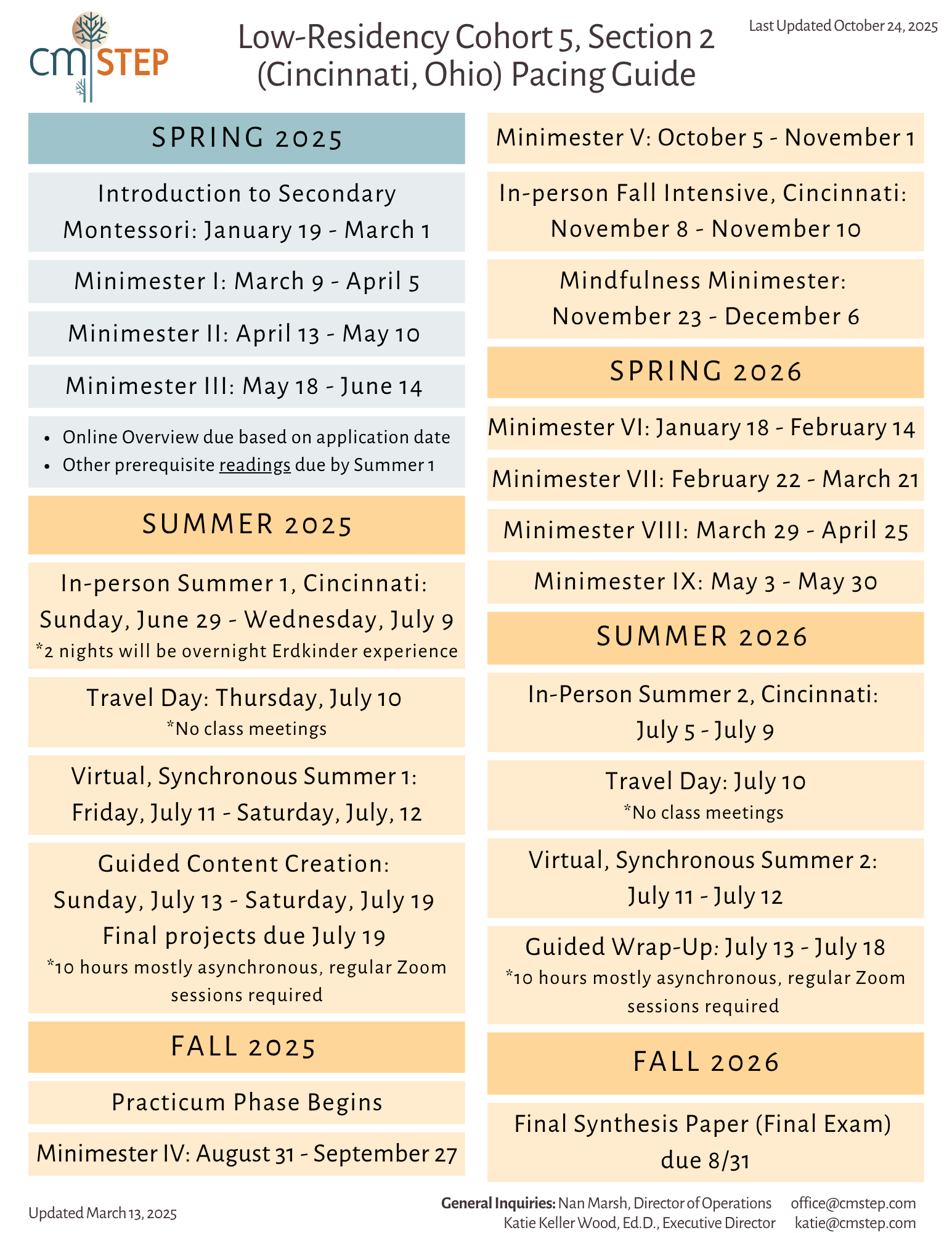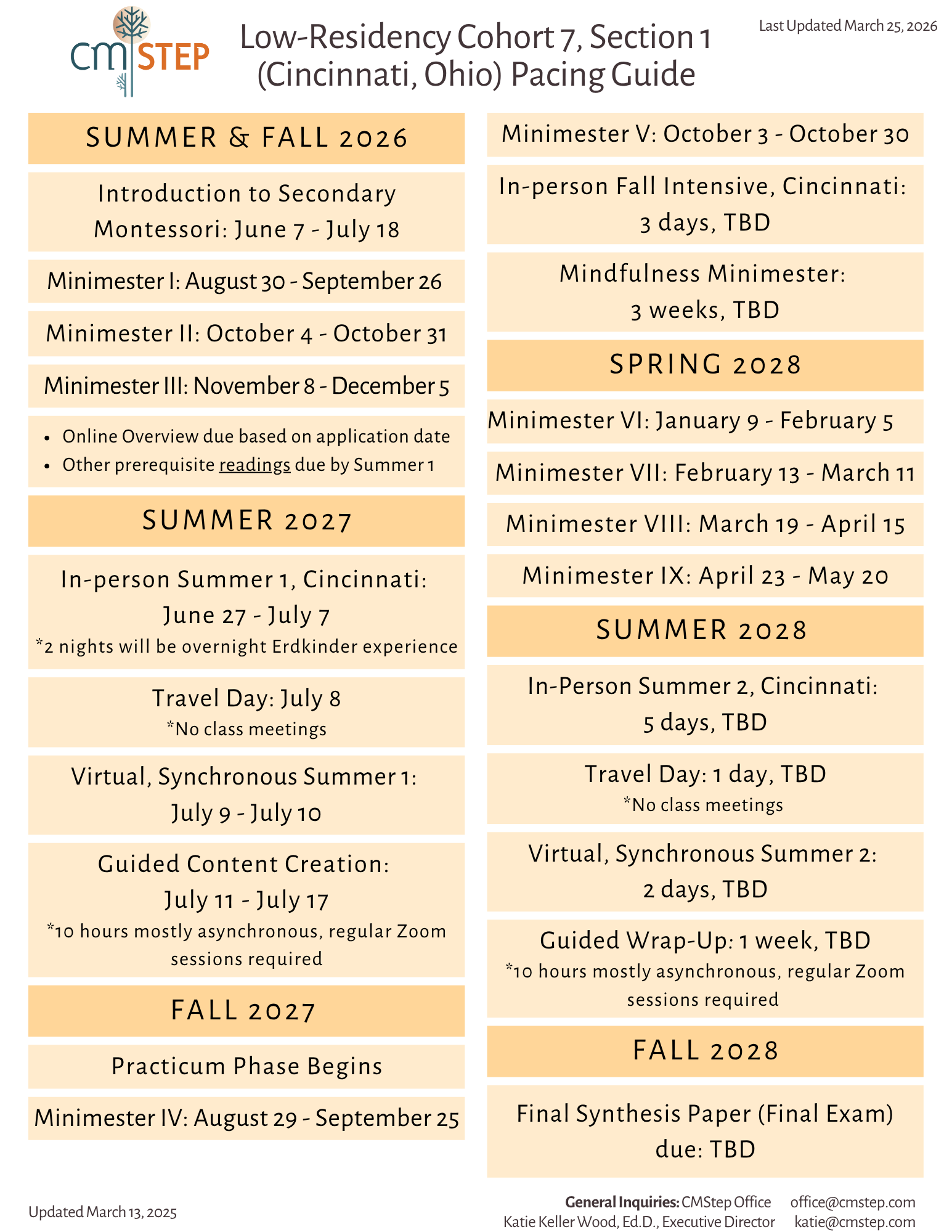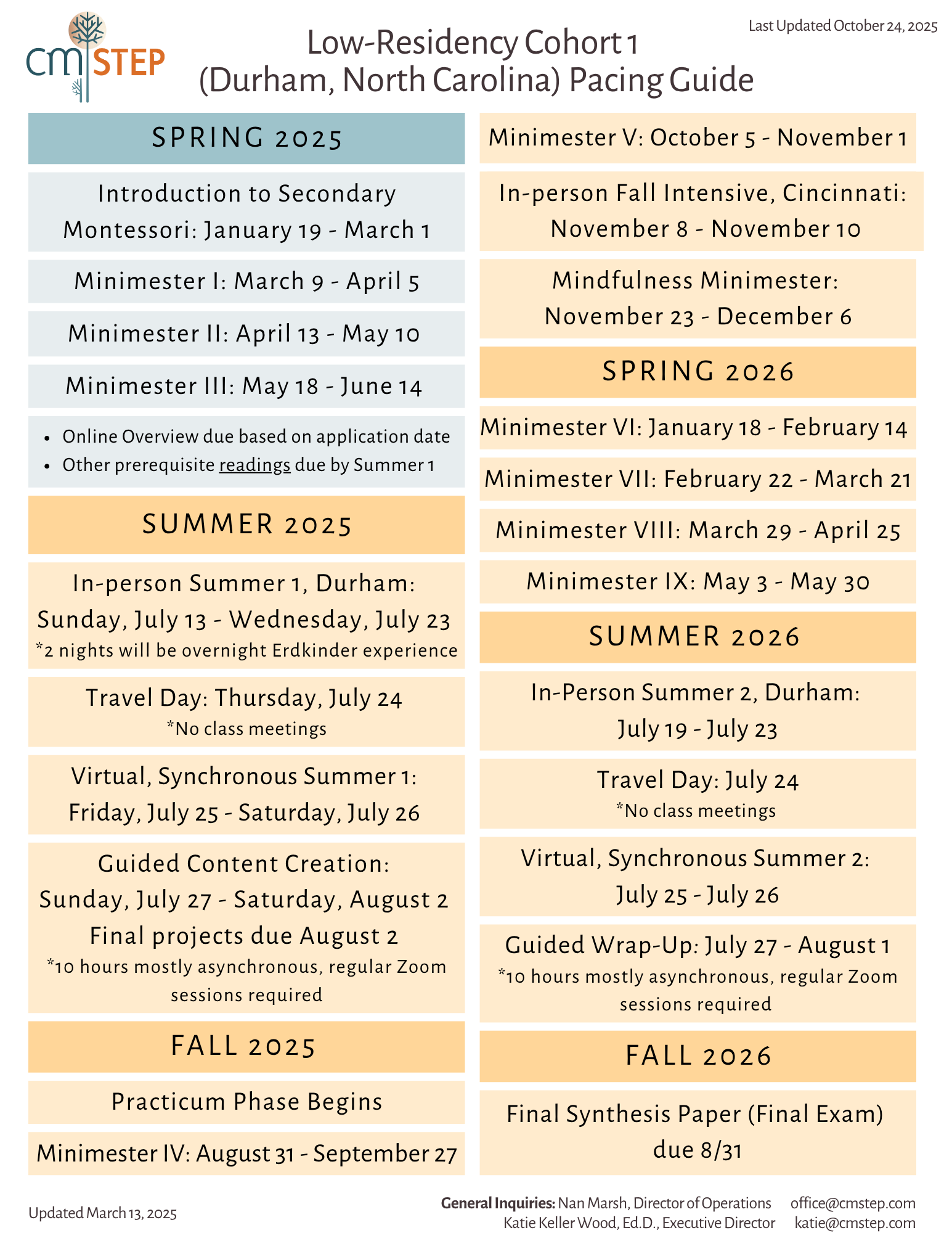 Your CMStep Pacing Guide provides a printable overview of your cohort’s academic schedule. While it doesn’t include site visit dates or Zoom check-ins, it’s a helpful planning tool. For detailed cohort information, refer to the Student Handbook provided after application.